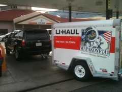 I’ve always missed driving an 8-cylinder vehicle, and today I missed it 100 times over. I still made it to my destination comfortably and in good time; I simply noticed the difference and did not enjoy it. As such, even if I tow a U-Haul only once every four years, it’s worth it to me to have all eight cylinders for the occasion. This fully loaded 5×8 trailer caused my gas mileage on this trip to drop to about 15 MPG from my 6-cylinder’s usual highway 20 MPG. I was still doing about the same speed with the trailer as I would without. No doubt the mileage would be all the worse with 8 cylinders, but so be it.