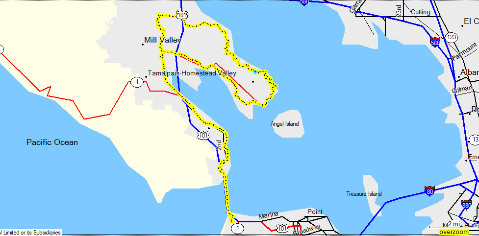 The “Tiberon Loop” is a popular, somewhat challenging and not-too-far-away route for cyclists in need of a quick jaunt out of the city.  I’m happy to have rediscovered it on Saturday, after having ridden it several years ago.  For a total of 36 miles from The Presidio, it’s a decent workout of relatively short distance.
