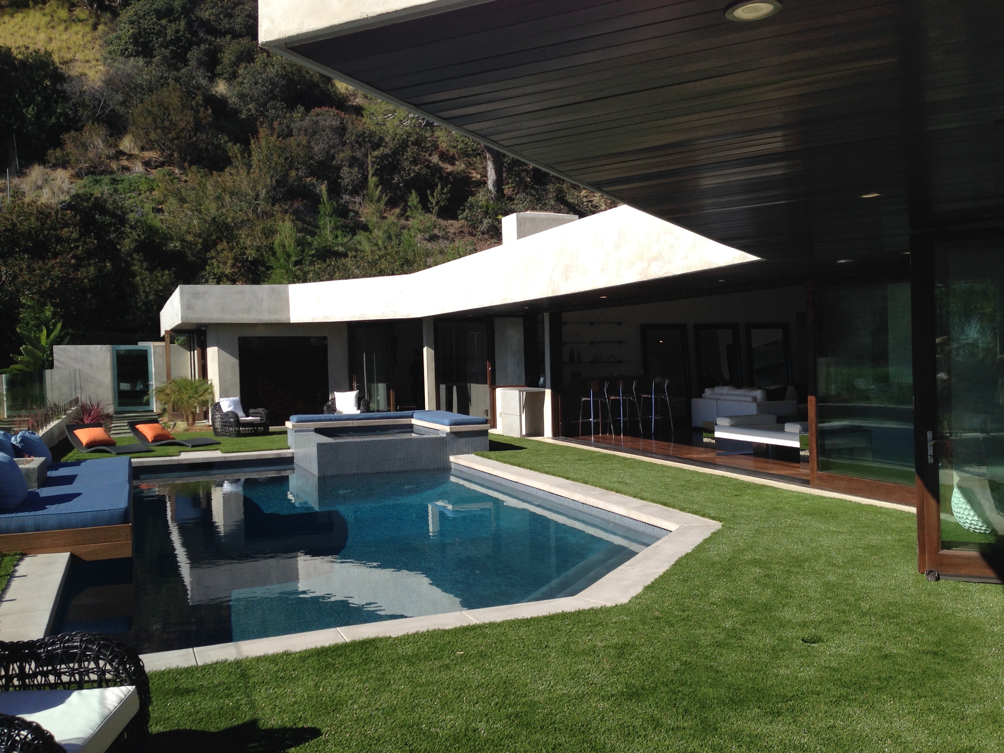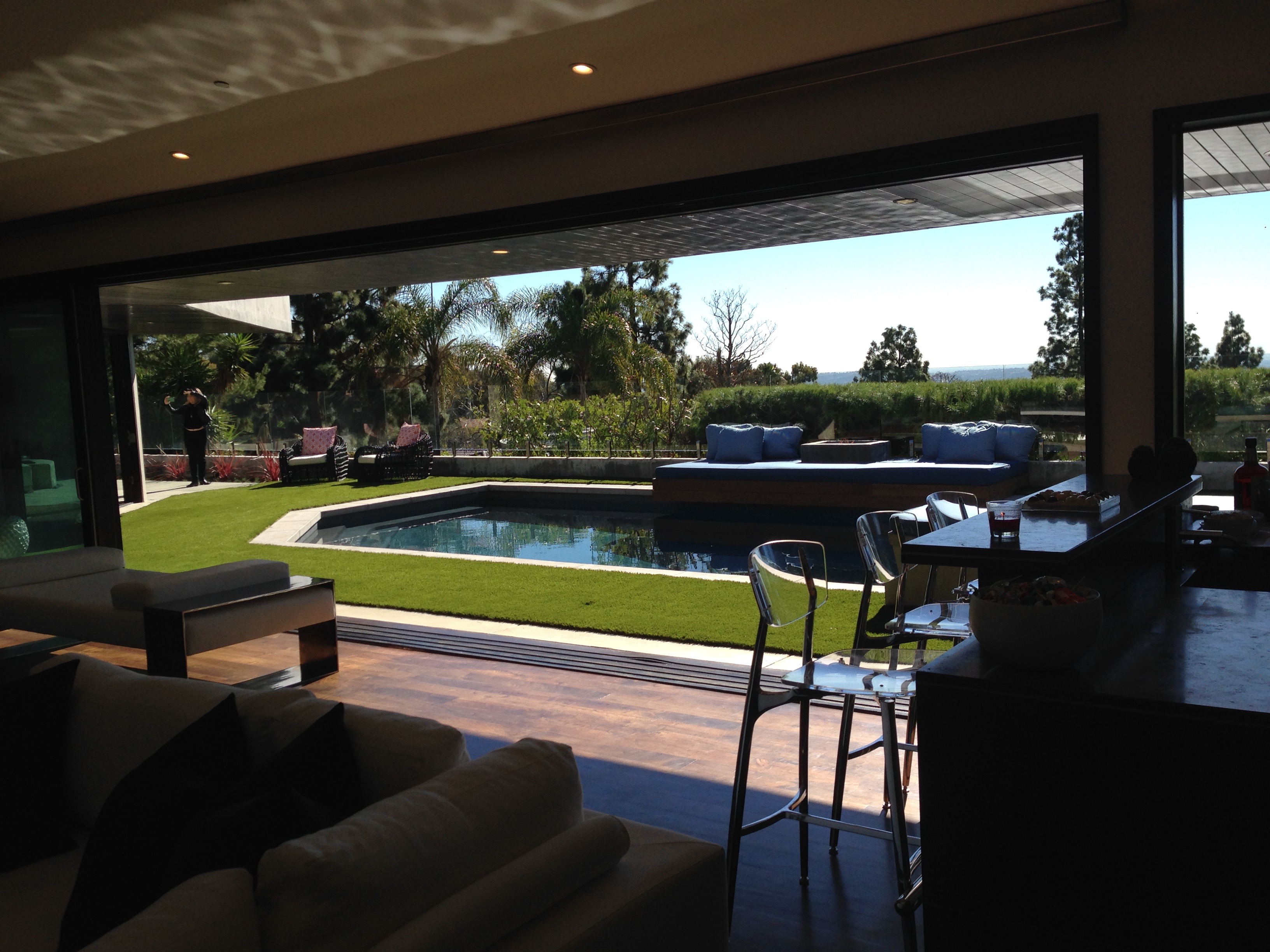 Such a seamless transition from living room to pool– five good steps to be exact– effortlessly unites interior space with the outdoors. The fact that an entire uninterrupted stretch of living room– from bar past fireplace to kitchen– literally peels open in one grand disappearance of glass to the view-lined backyard, dramatically cements this union. Meanwhile, the abundant remainder of this striking yet inviting home remains to be discovered. Altogether, the many contemporary architectural elements of 1281 Loma Vista Drive truly bring the “inside out.”