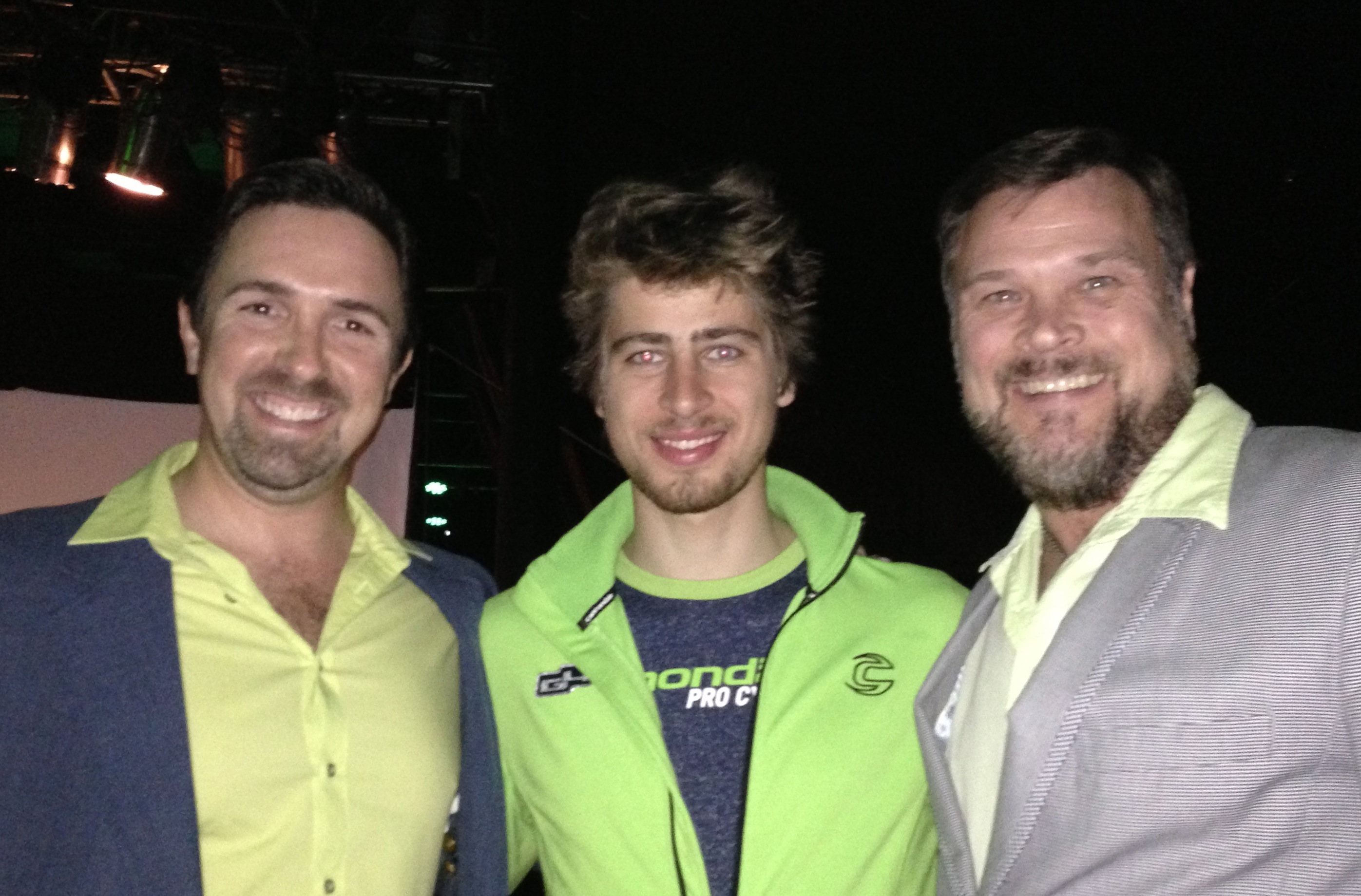 A privilege and a pleasure it was to meet cycling great Peter Sagan at Cannondale’s 2014 team launch party on January 7 at the Canyon Club in Agoura, California. For as exhausted as he and his teammates surely must have been by the end of the evening, together they put on one excellent show for all of us. You won’t find them spinning through the streets of Thousand Oaks for long however, as races are fast underway. We’ll see Peter back here in no time of course, ready to defend his green jersey in the Tour of California come May. For now– one week in– let the cycling year begin, for the pros and all of us somewhere behind them!